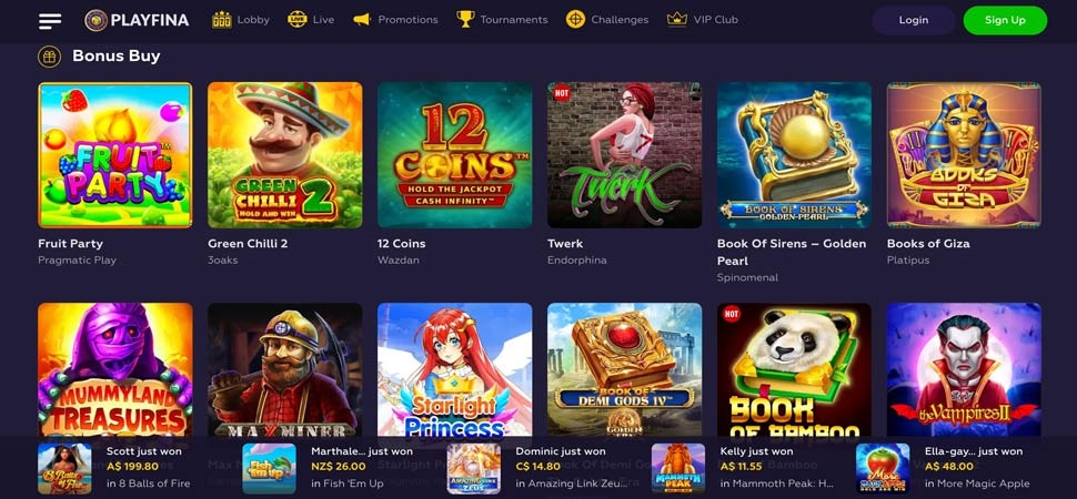 At Playfina Casino, you can find a wide variety of games including slots, table games, live dealer games, and specialty games. Whether you enjoy classic slots, blackjack, roulette, or specialty games like bingo or keno, Playfina Casino has something for everyone.